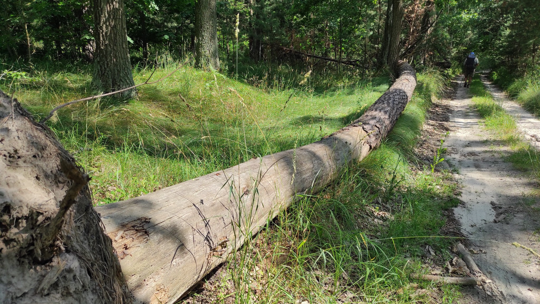 Но Карпатами мы не ограничились, у меня остались еще 2 недели до истечения разрешенного 3-х месячного срока пребывания на Украине, и мы прошли запланированный кусочек Житомирских лесов от Шепетовки до Ходоркова, 240км, с 3-11 августа. Но от Шепетовки леса менее интересные - смешанный лес, заболочено, много полей, много комаров. Приходилось ориентироваться по спутниковым картам, многих дорог на топо-картах и OSM нет. Грибов мало, но иногда попадались. Бешеный урожай черники, она везде.